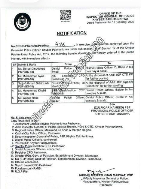 پی پی او ذوالفقار حمید کے جاری اعلامیہ کے مطابق ڈی پی او سجاد احمد صاحبزادہ کو ایڈیشنل آئی جی سپیشل برانچ بھیج دیا گیا ان کی جگہ ڈی پی او صوابی ضیاء الدین احمد ڈی پی او ڈیرہ تعینات کر دیئے گئے ہیں۔ ڈیرہ دریا خان پل کو کھلوانے کے لیے ڈی پی او ڈیرہ سجاد احمد صاحبزادہ کے پی ٹی آئی ورکروں کے ساتھ مذاکرات کے بعد بین الصوبائی شاہراہ تو کھول دی گئی تاہم موقع پر ورکروں نے ڈی پی او کو ہٹانے کا اعلان کیا جس کی آج تکمیل کر دی گئی۔